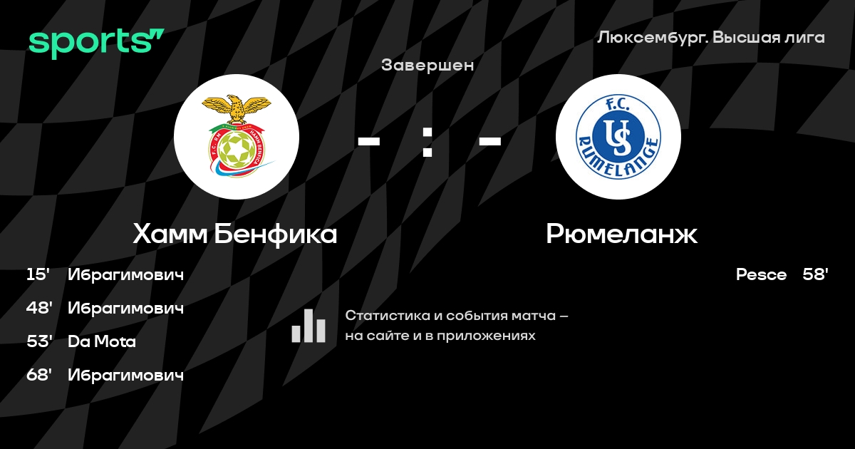 Хамм Бенфика – Рюмеланж: коэффициенты