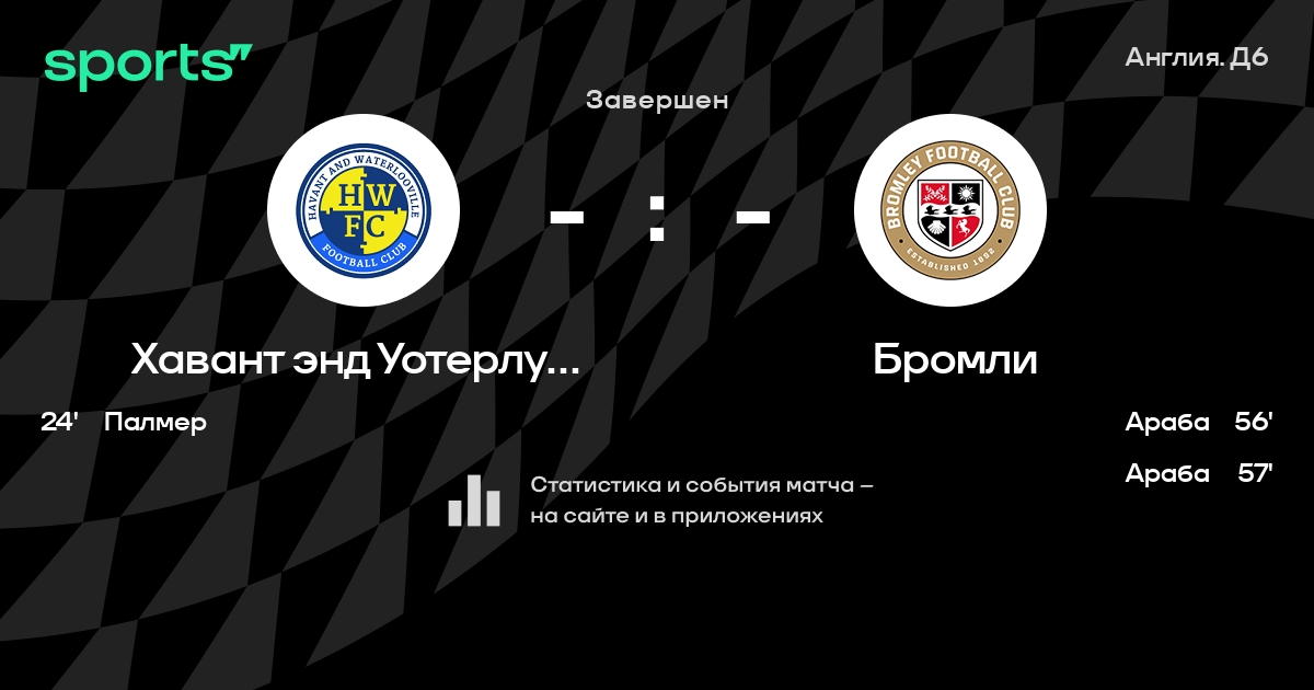 Хавант энд Уотерлувилл – Бромли: Хавант энд Уотерлувилл не проигрывает в 6 из 8 последних матчей против этого соперника в турнире «Англия. Д6»