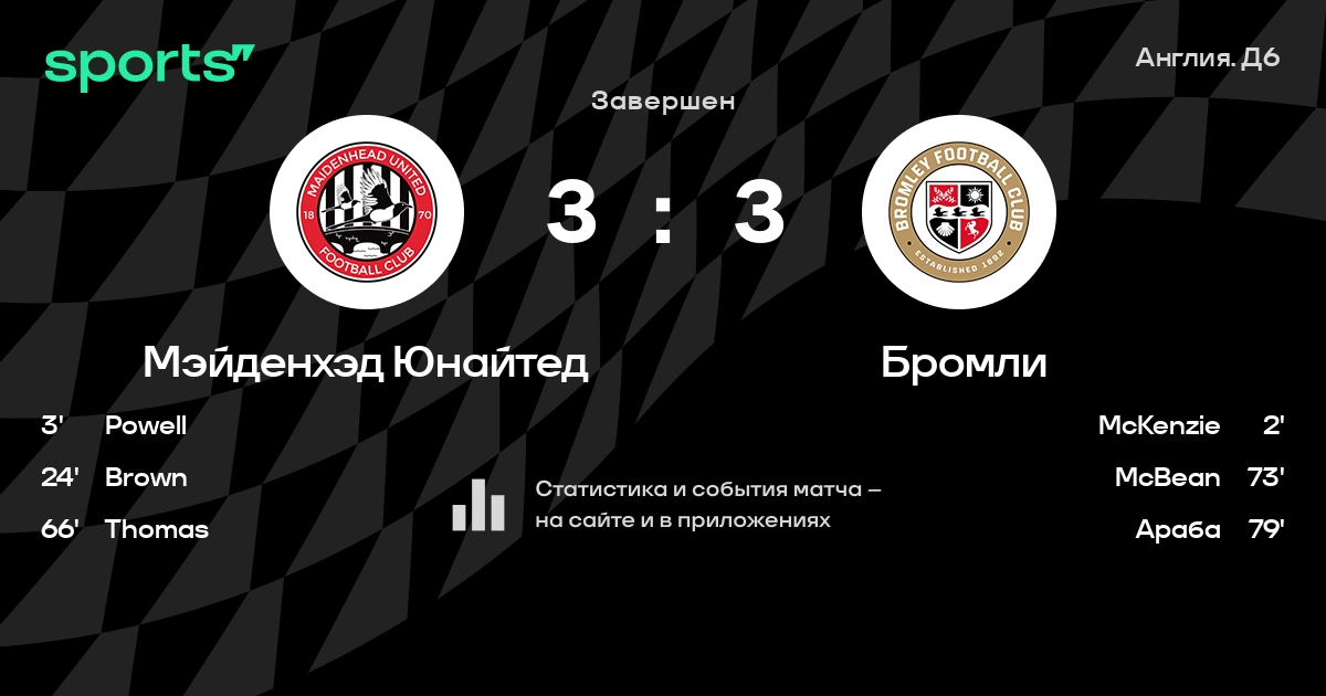 Трансляция Мэйденхэд Юнайтед - Бромли