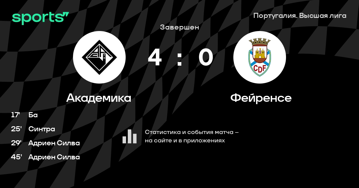 Чемпионат Португалии. 6-й тур. «Академика» разгромила «Фейренсе» и другие результаты