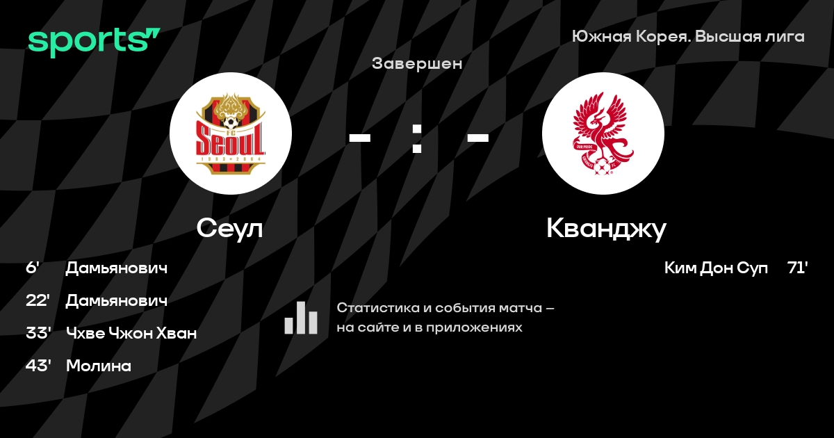 Ким Ен Дэ - Dos Santos, Park, Хен Ен Мин, Ли Ге Ро - Молина, Ко Мен Чжин, Чхве Хен Тхэ, Чхве Чжон Хван - Дамьянович, Ли Сын ЕлЗапасные: Чжо Су Хек, Lee, Ким Дон У, Moon, Kang, Ко Кван Мин, Чхве Тхэ Ук