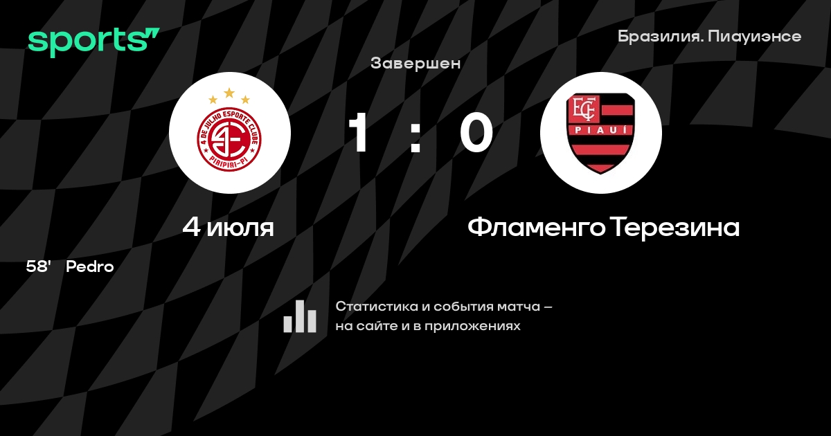 4 июля – Фламенго Терезина: 4 июля не проигрывает в 10 последних матчах против этого соперника