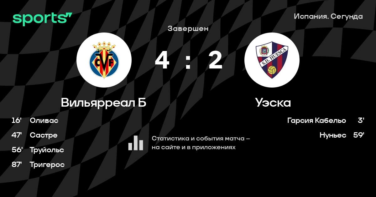 Трансляция Вильярреал Б - Уэска