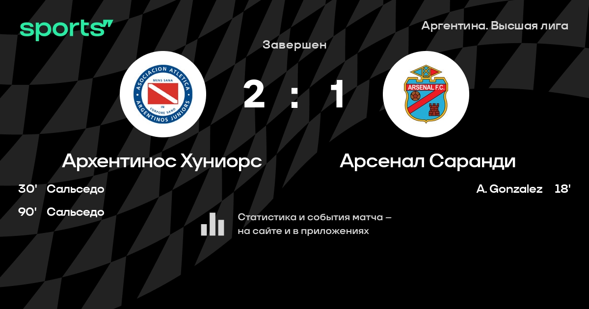 Трансляция Архентинос Хуниорс - Арсенал Саранди
