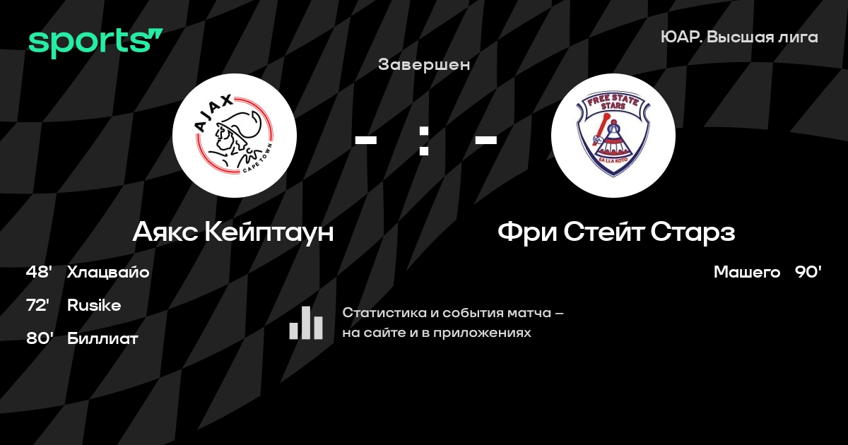 Трансляция Аякс Кейптаун - Фри Стейт Старз