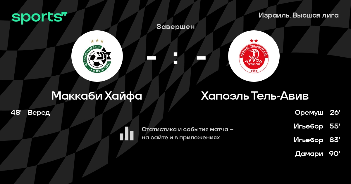 Трансляция Маккаби Хайфа - Хапоэль Тель-Авив