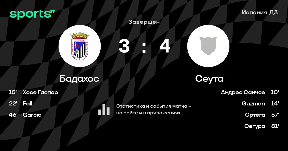 Fernández Guillermo - Herrera Coral, Durán Jiménez - Моутиньо, Хосе Гаспар, Viyuela Callejo, González García, García Villatoro, Парада, Fall - Torres RodríguezЗапасные: Andrade Ortiz, Carretero Rodríguez, Parrilla Morán, Carballo Becerra, Меса