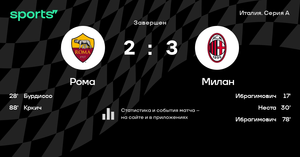 Аббьяти - Неста, Тиаго Силва, Абате, Дзамбротта - Аквилани, Ночерино, К.-П. Боатенг, ван Боммел - Ибрагимович, РобиньоЗапасные: , Тайво, Амброзини, Кассано