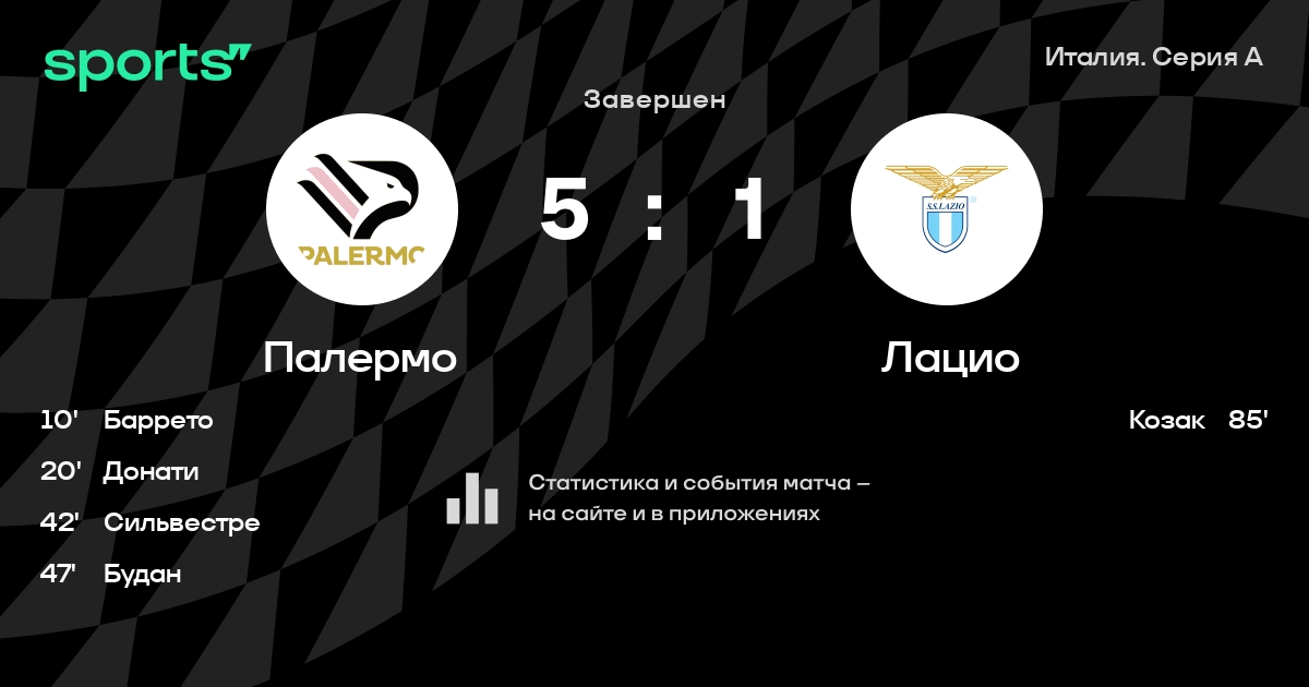 Вивиано - Мантовани, Пизано, Бальцаретти, Сильвестре - Баррето, Иличич, Мильяччо, Донати - Микколи, БуданЗапасные: Цорвас, Муньос, Аккуа, Делла Рокка, Бертоло, Захави, Васкес