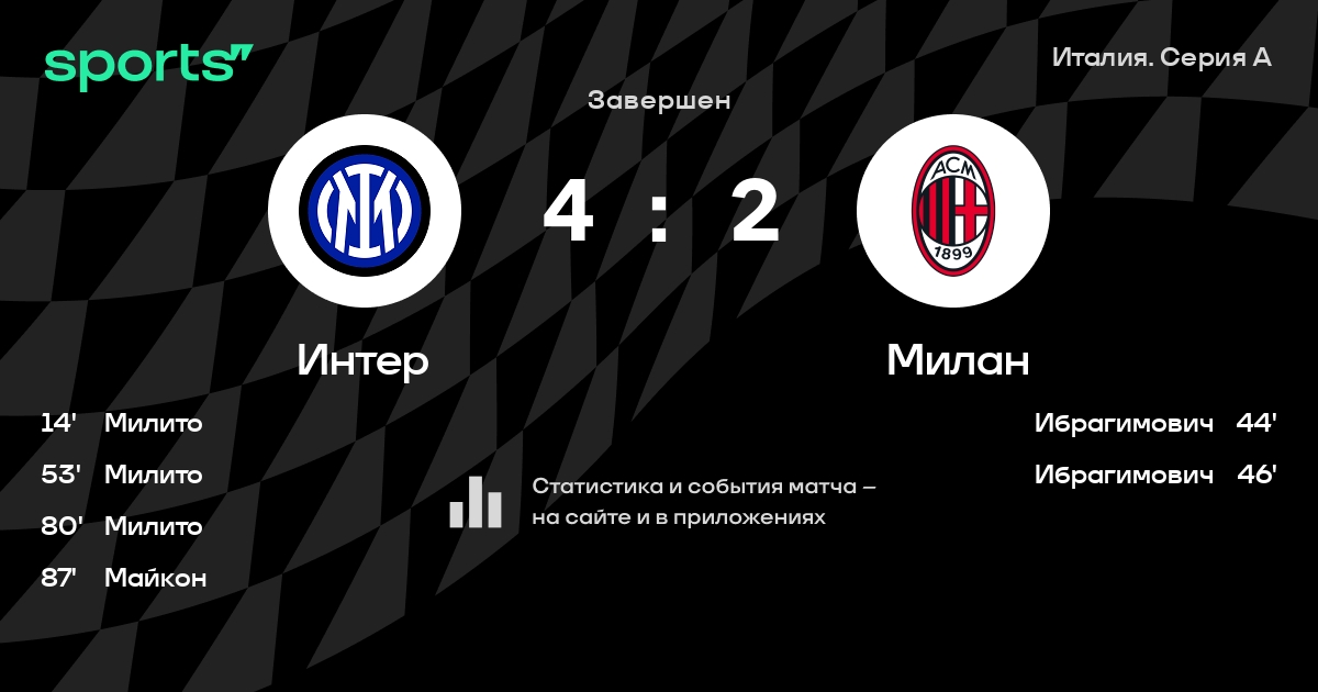 Аббьяти - Неста, Абате, Бонера, Йепес - Ночерино, К.-П. Боатенг, ван Боммел, Мунтари - Ибрагимович, РобиньоЗапасные: , Мексес, Де Шильо, Лопес, Кассано