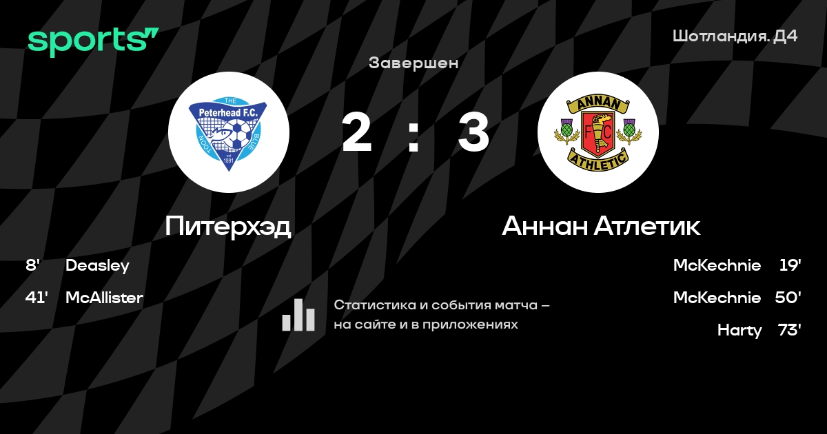 Summersgill - Aitken, Gibson, Watson, McGowan - Jardine, Sloan, McKechnie - Cox, O'Connor, HartyЗапасные: Mitchell, Forsyth, Steele, Atkinson, Bell
