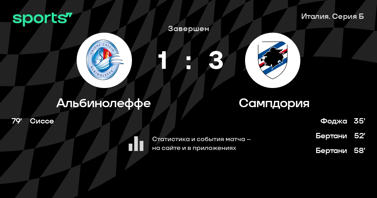 Ромеро - Падалино, Коста, Аккарди, Кастеллини - Семиоли, Паломбо, Обианг, Фоджа - Бертани, МаккаронеЗапасные: Анжело, Вольта, Дессена, Коман, Форнароли, Пьоваккари