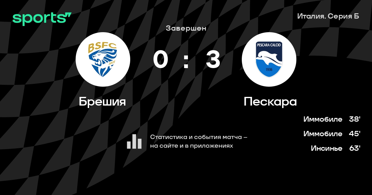 Италия. Серия В. 10-й тур. «Пескара» на выезде разгромила «Брешию» и другие результаты