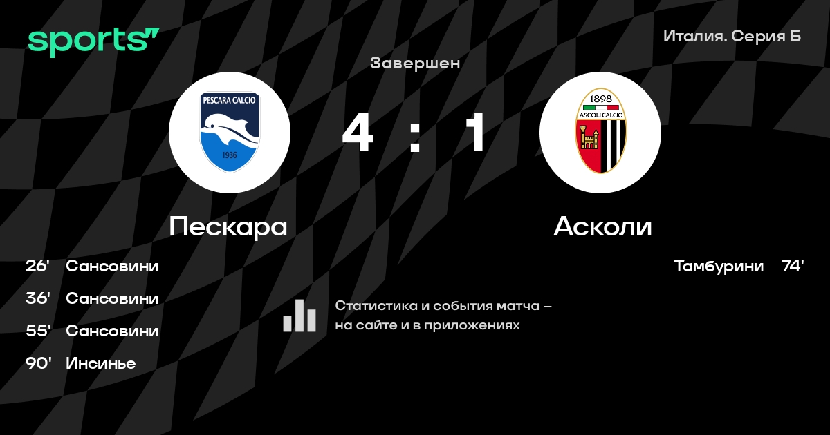 Италия. Серия В. 10-й тур. «Пескара» на выезде разгромила «Брешию» и другие результаты