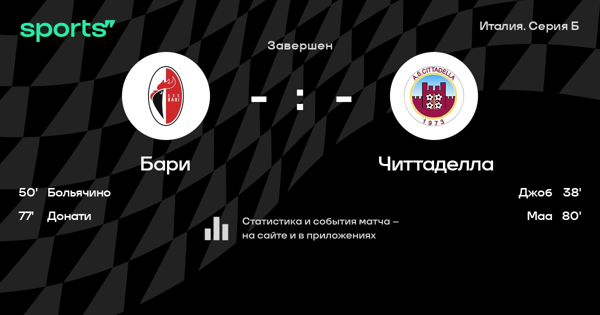 Италия. Серия B. 18-й тур. «Бари» сыграл вничью с «Читтаделлой» и другие результаты