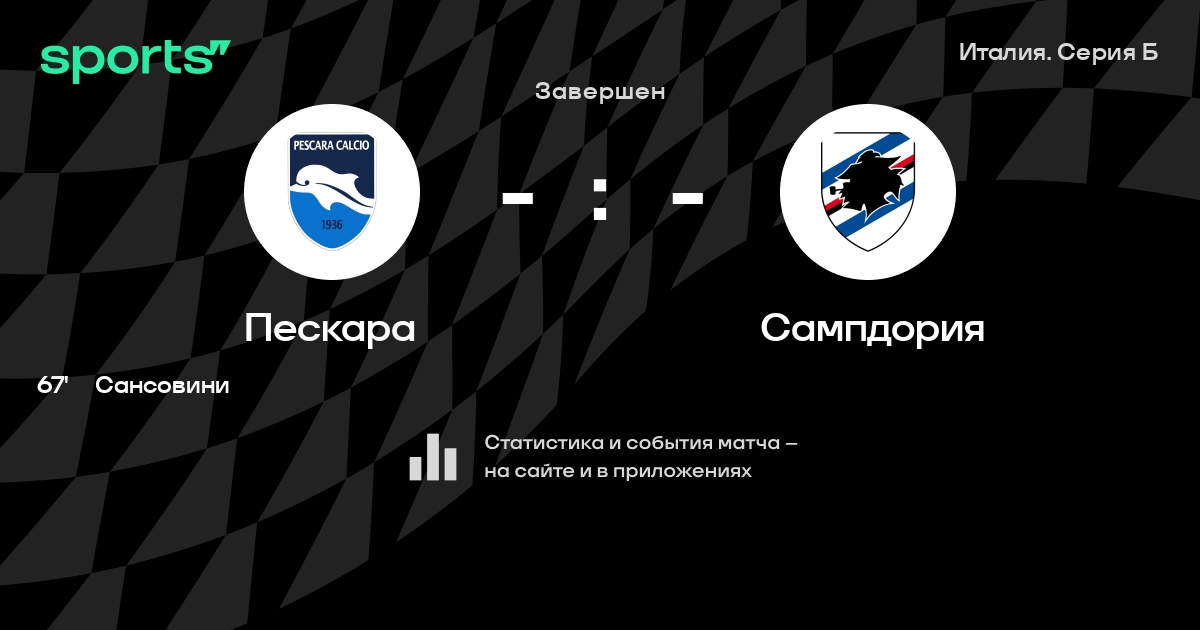 Италия. Серия B. 20-й тур. «Пескара» победила «Сампдорию» и другие результаты