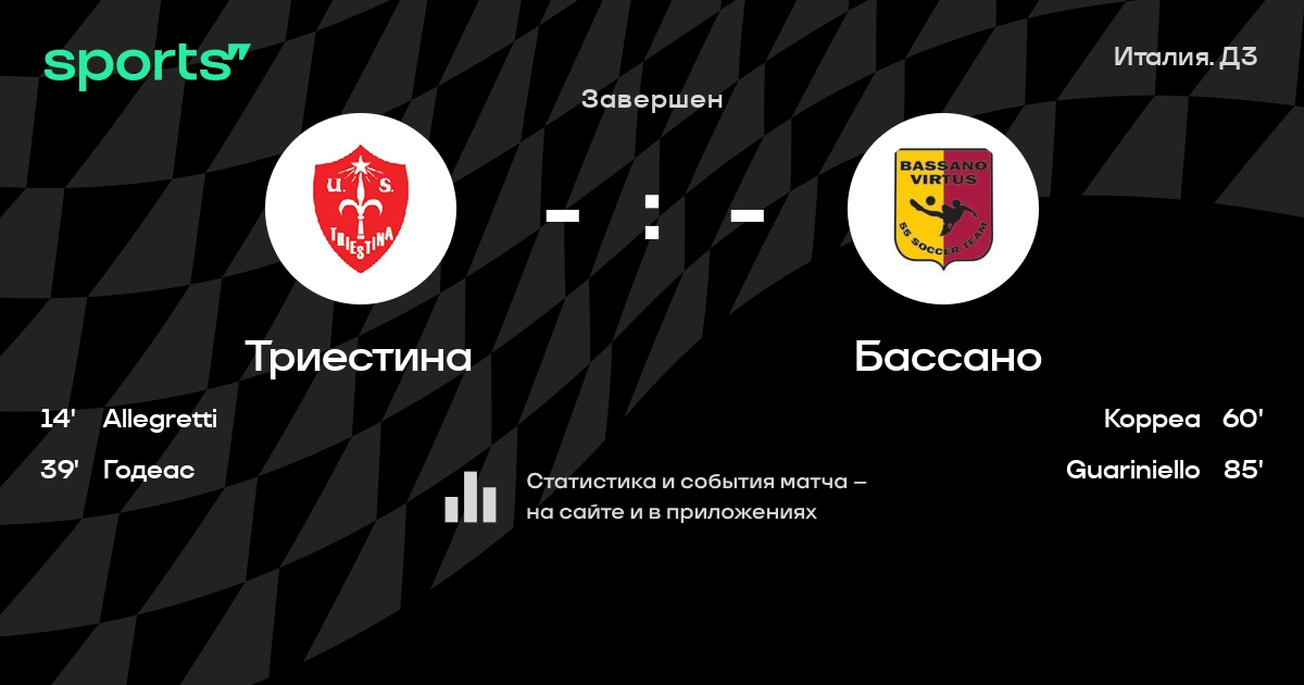 Gadignani - Лима, D'Ambrosio, Галассо, Rossi - Rossetti, Princivalli, Allegretti, Gissi - De Vena, ГодеасЗапасные: Вигорито, Tombesi, Маннини, Пинарес, Evola, Мотта, Дзампаро