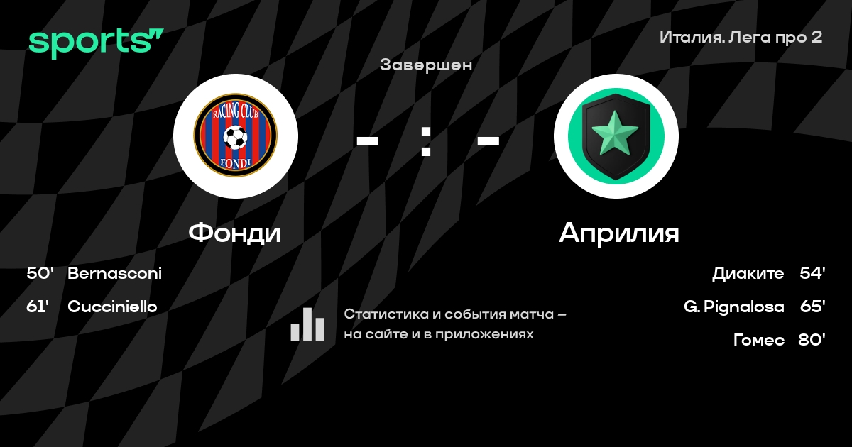 Gasparri - Rinaldi, Schettino, Iovinella, Dionisio - Alleruzzo, Тамаши, Cucciniello, Rossini - Ricciardo, BernasconiЗапасные: Mezzacapo, Chiarini, Bennardo, Pacini, Грилло, Vaccaro, Амара