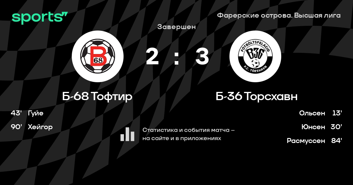 Магнуссен - Joensen, Хейгор, Гуйе, Stokholm - Петерсен, Langgaard, Кейта, Olsen - Ольсен, ХейгорЗапасные: , Хейгор, Хейгор, Johannesen, Hansen, Andreassen
