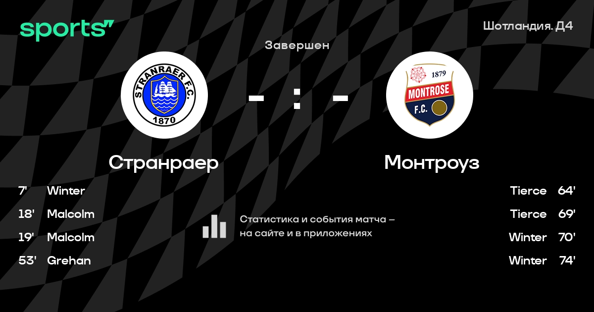 Andrews - Lunan, McNally, Smart, Campbell, Crawford, Крайтон - Cameron, Winter - Johnston, БойлЗапасные: Wood, Masson, McPhee, Pierce, Dimilta