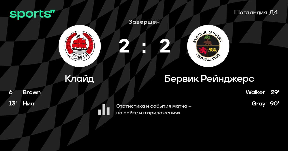 Баркли - Townsley, Thomson, McLeod, McLean - Walker, Greenhill, Currie - McLaren, Gray, NobleЗапасные: Sorley, Deland, Gray, Gribben, Ferguson