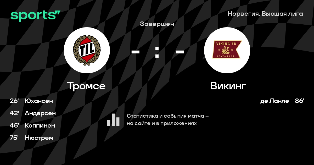 Лекстрем - Норбю, Сисс, Бьорк, Коппинен - Драге, Андерсен, Юхансен, Йенссен - Ондрашек, НюстремЗапасные: Andreassen, Кристиансен, Ундестад, Франтцен, Люсволль, Ahamed, Орст