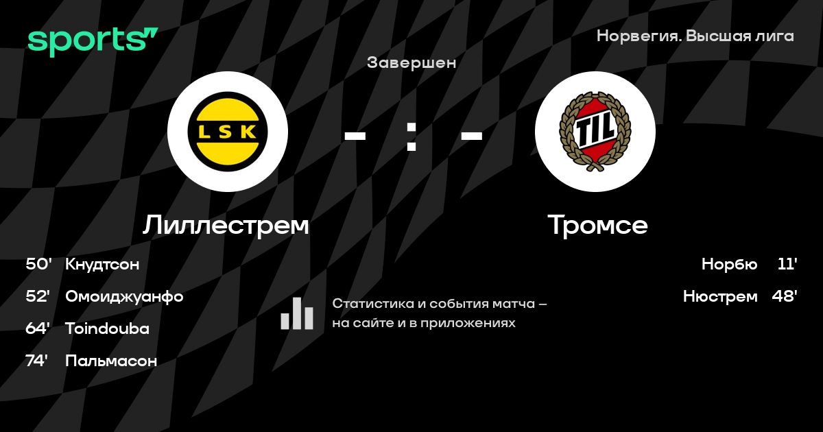 Рамович, Андерссон - Кнудтсон, Рингстад, Скель, Стор, Габрильсен - Моэн, Пальмасон - Болли, ОмоиджуанфоЗапасные: Магнуссон, Вестерберг, Хойбротен, Toindouba, Освольд