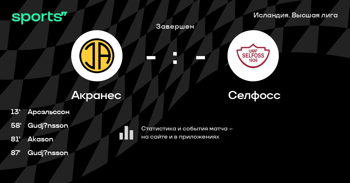 Ólafsson - Адольфссон, Бьорнссон, Gudjónsson, Арсэльссон - Гудьонссон, Martin, Gudjonsson, Einarsson - Ákason, МартинЗапасные: Gunnlaugsson, Alexandersson, Karlsson, Flosason, Valdimarsson, Bergmann Gunnlaugsson