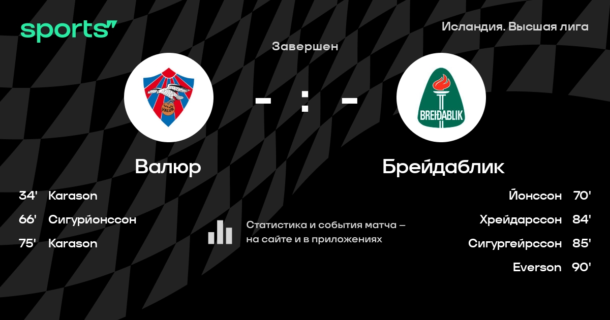 Кале - Хрейдарссон, Йонссон, Ингасон, Трост, Хельгасон - Маргейрссон, Йоман - Роде, Гардарссон, EversonЗапасные: , Магнуссон, Харальдссон, Торстейнссон, Бальдвинссон, Адальстейнссон