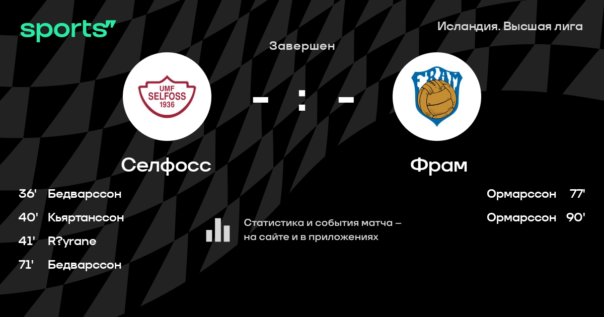 Кристинссон - Тиллен, Hauksson, Лоуинг - Ормарссон, Eysteinsson, Jónsson, Асгейрссон, Хьюсон - Jonasson, ХалльдорссонЗапасные: Чардаклия, Гуннарссон, Birgisson, Magnusson, Гудмундссон, Фридьонссон, Jóhannesson