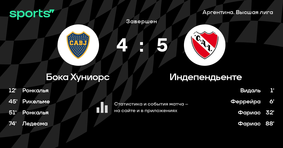 | 1 | Бока Хуниорс | 19 | 12 | 7 | 0 | 25 | 6 | +19 | 43 | ||