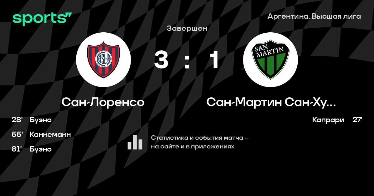 Трансляция Сан-Лоренсо - Сан-Мартин Сан-Хуан
