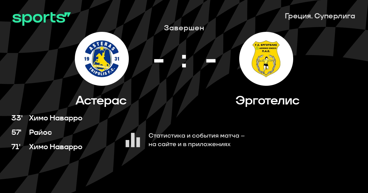 Пирсон - Дарлас, Хиблингер, Саррис, Ялусис - Сантос, Жуниор, Фрагулакис - Леаль, Будимир, КацикокерисЗапасные: Кавусакис, Йованович, Цанакакис, Олисе, Кирьякидис, Куцианикулис, Карелис