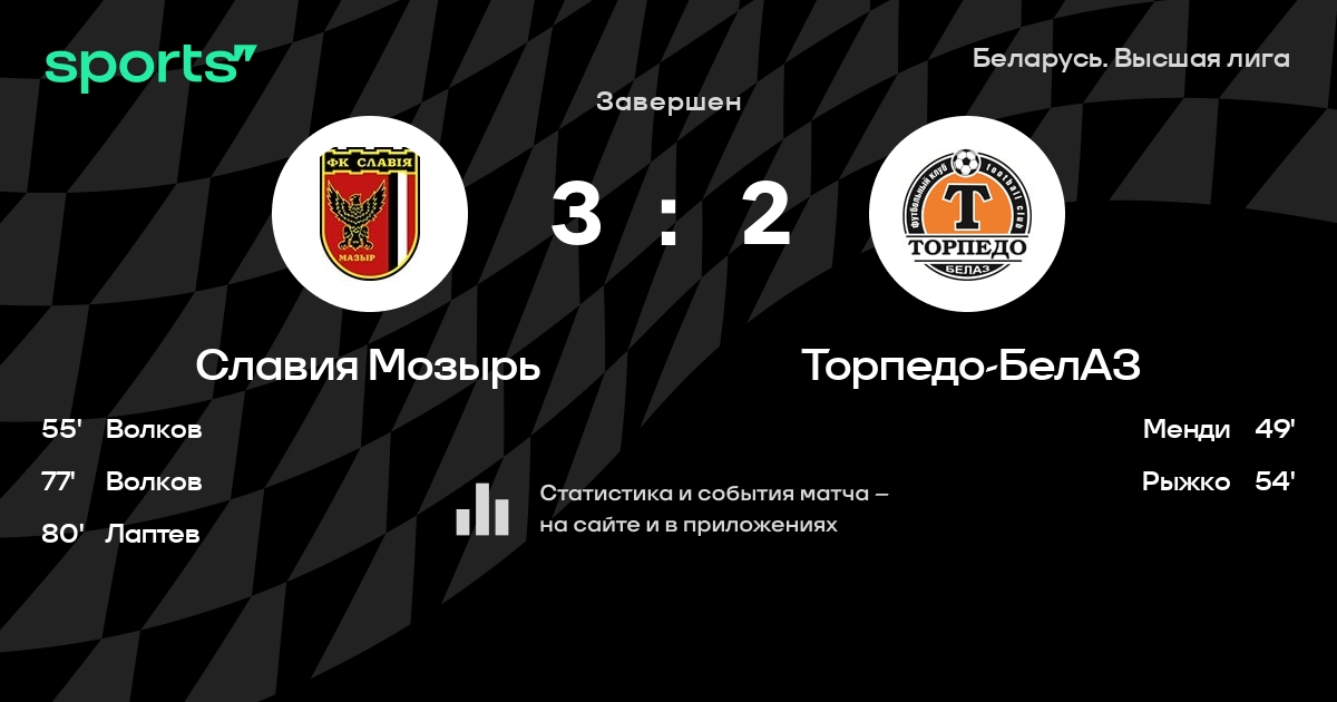 Славия Мозырь - Торпедо-БелАЗ: статистика матча