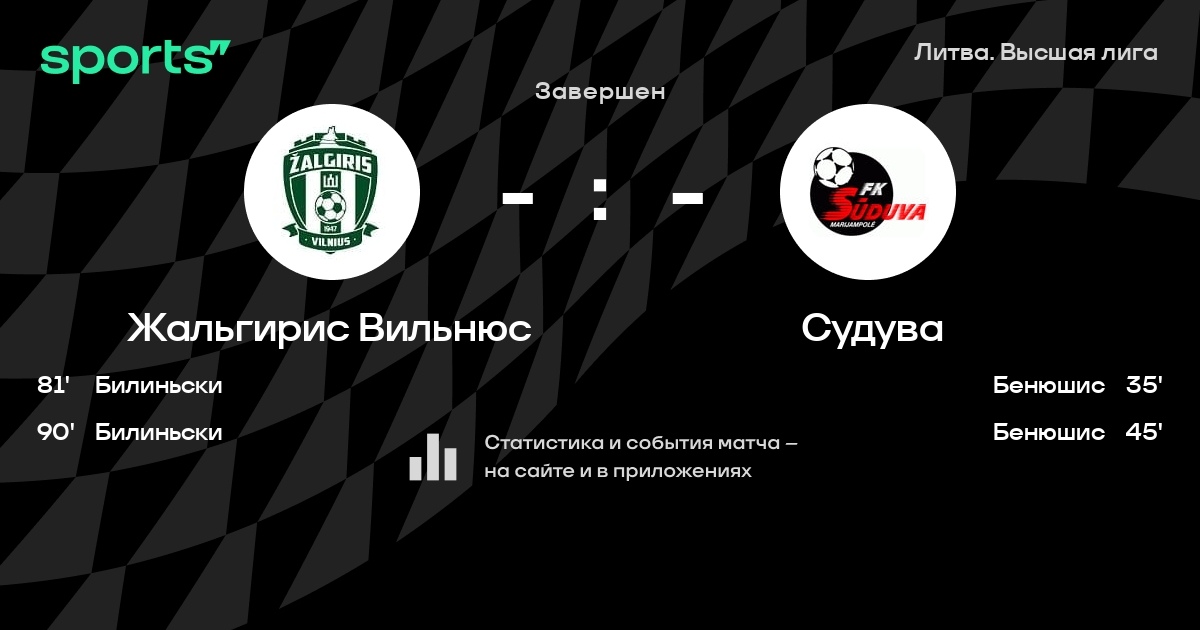 Трансляция Жальгирис Вильнюс - Судува