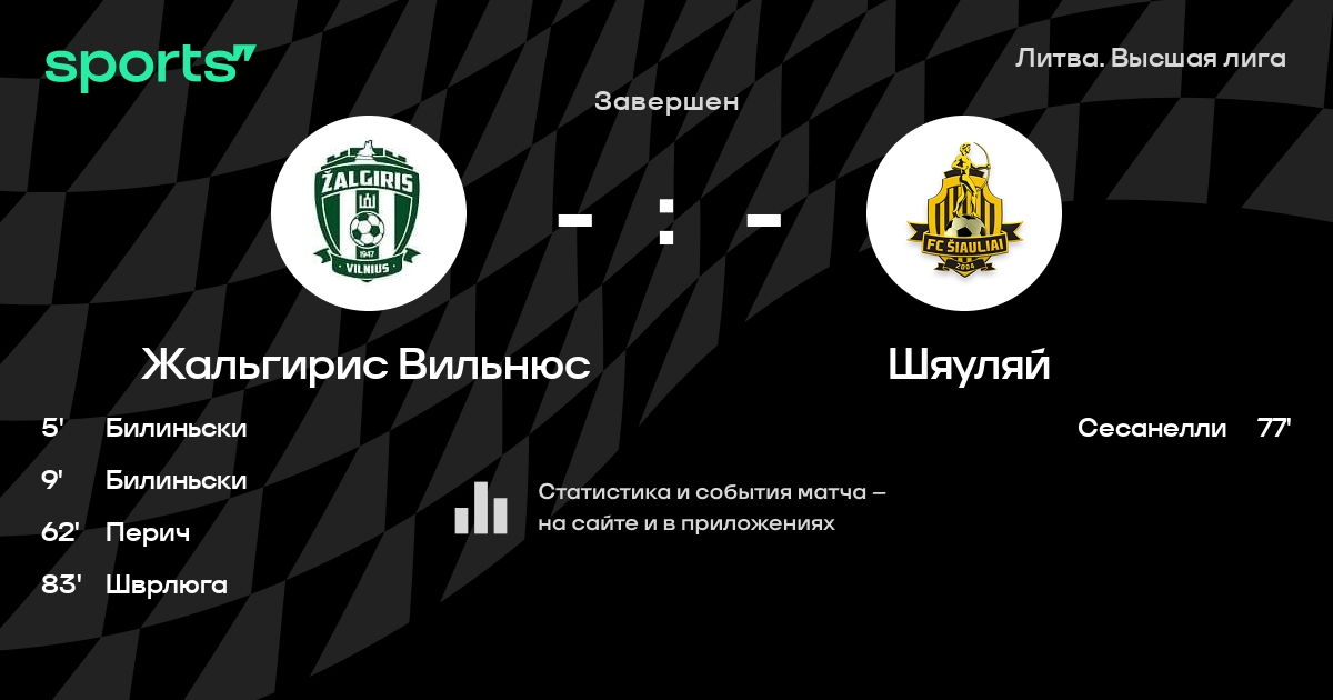 Жальгирис Вильнюс – Шяуляй: коэффициенты