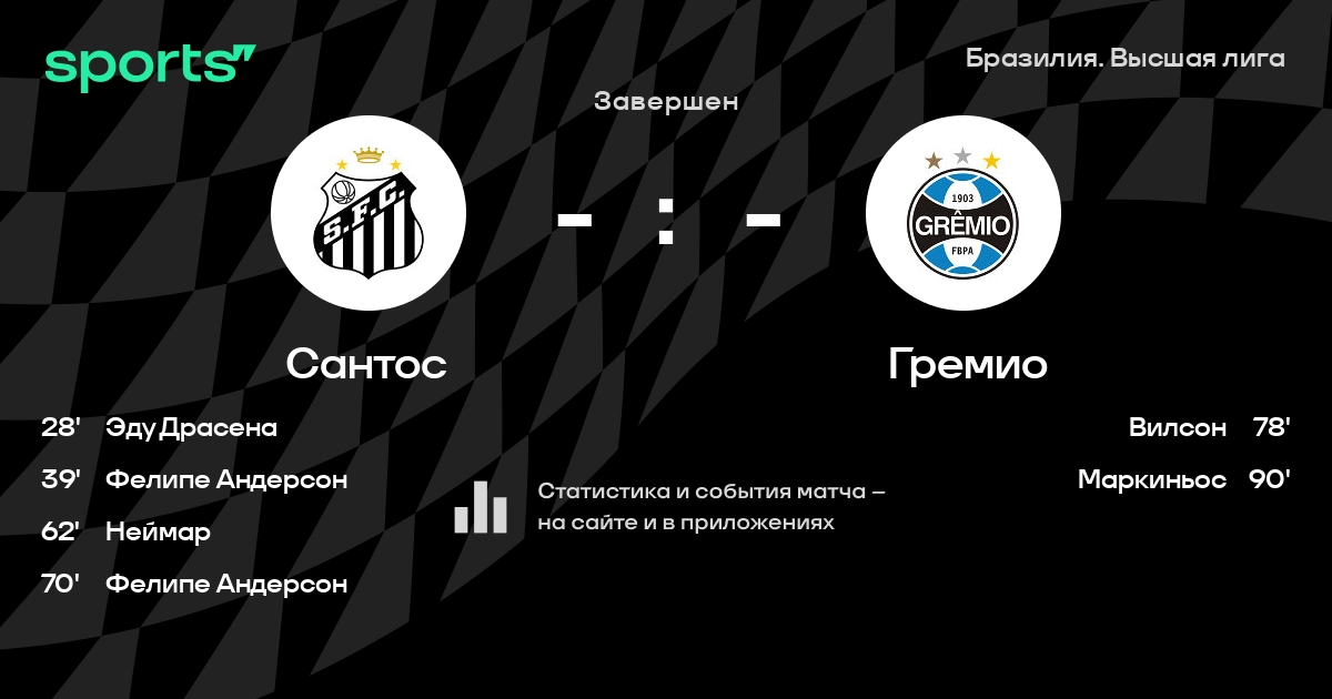 Рафаэл - Дурвал, Бруно Перес, Эду Драсена - Жуан, Адриано, Ароука, Фелипе Андерсон, Энрике - Неймар, Виктор АндрадеЗапасные: Аранья, Бастос, Бруно Родриго, Паскоа, Маграо, Леандриньо, Жеуванио