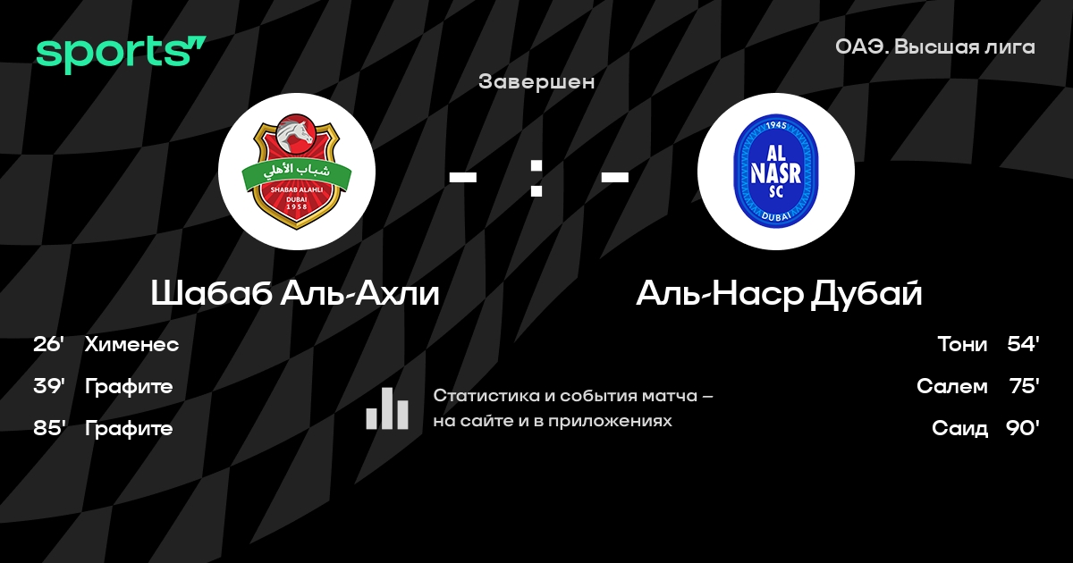 Трансляция Шабаб Аль-Ахли - Аль-Наср Дубай