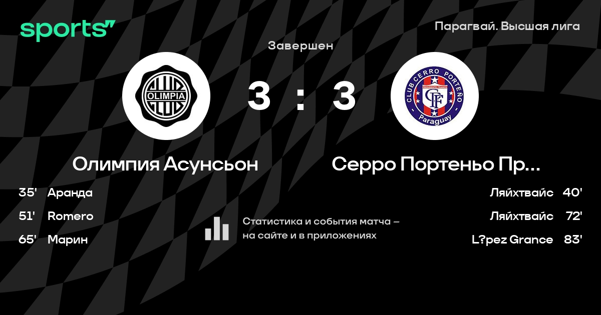 Трансляция Олимпия Асунсьон - Серро Портеньо Президенте-Франко