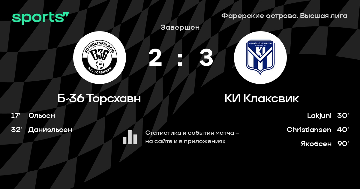 Ганго - Isaksen, Hammer - Joensen, Ольсен, Якобсен, Christiansen - á Lakjuni, Хайнесен, Клеттскар, ЭльттерЗапасные: , Kalsø, Симонсен, Клакстейн, Якобсен, Хайнесен