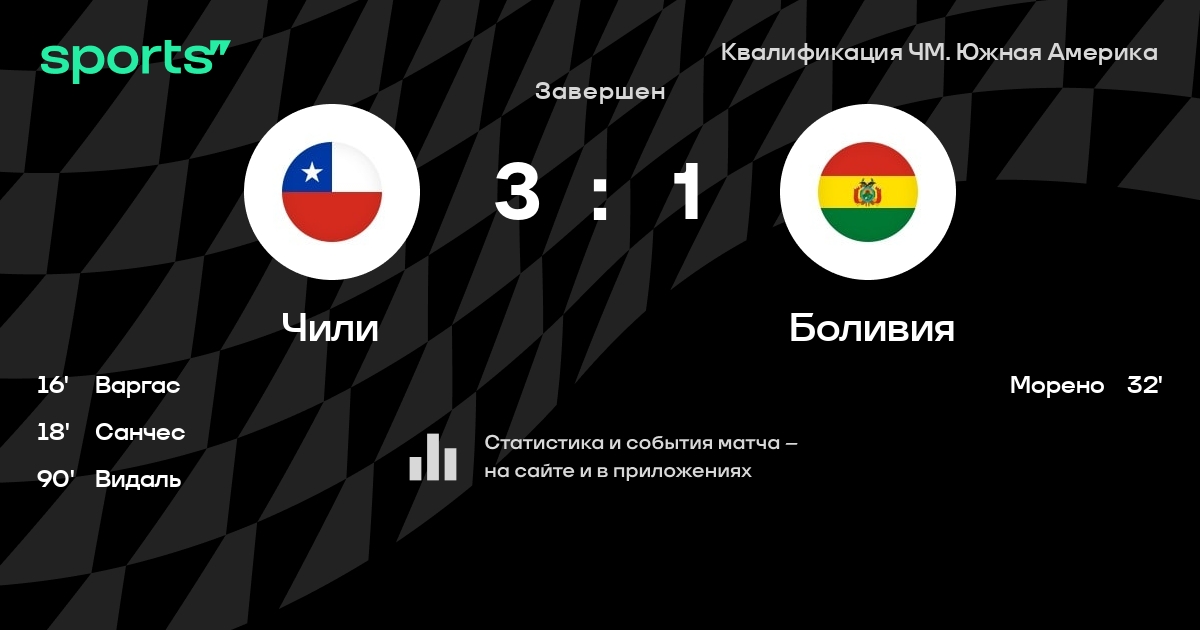 Браво - Рохас, Гонсалес, Медель, Мена - Диас, Видаль, Писарро - Варгас, Паредес, СанчесЗапасные: Эррера, Хара, Альварес, Босежур, Фернандес, Кармона, Гонсалес, Сильва, Фернандес, Пинто