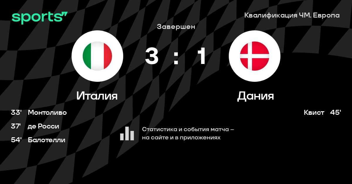 де Санктис - Абате, Кьеллини, Бардзальи, Бальцаретти - Монтоливо, Маркизио, Пирло, де Росси - Балотелли, ОсвальдоЗапасные: Сиригу, Вивиано, Раноккия, Маджо, Кандрева, Джаккерини, Верратти, Диаманти, Дестро, Эль-Шаарави