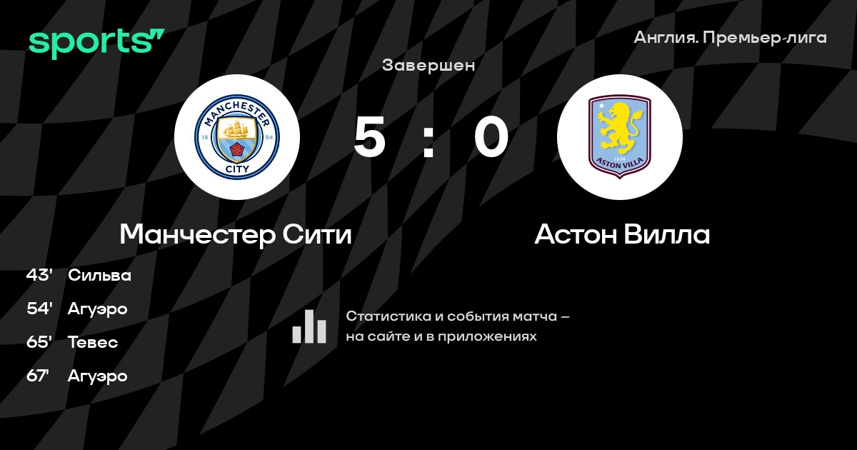«Манчестер Сити» – «Астон Вилла» – 5:0. Агуэро и Тевес сделали по дублю