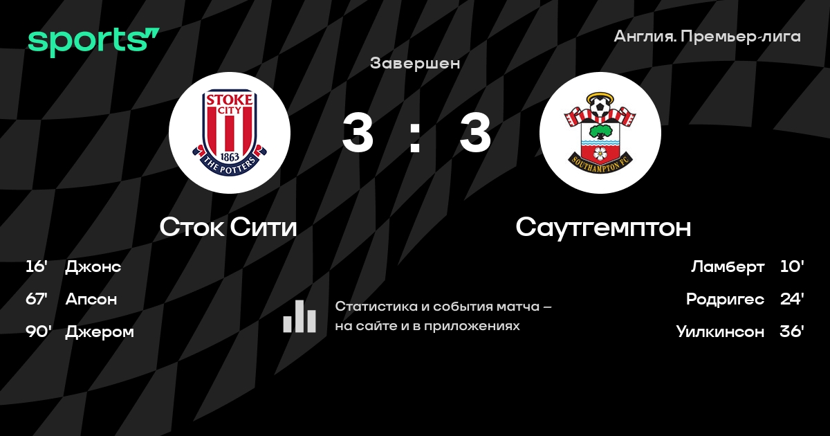 Бегович - Уилкинсон, Апсон, Хут, Шоттон - Этерингтон, Нзонзи, Уэлан, Кайтли - Уолтерс, ДжонсЗапасные: Соренсен, Паласиос, Джером, Оуэн, Крауч