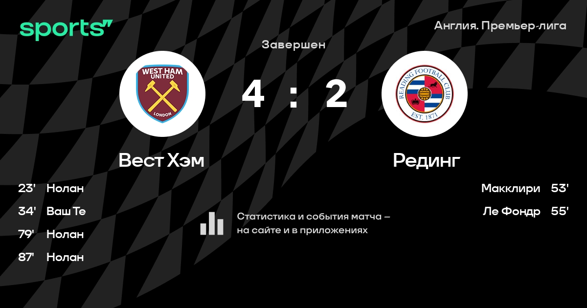 Вест Хэм – Рединг: Рединг забивает в 4 последних матчах против этого соперника