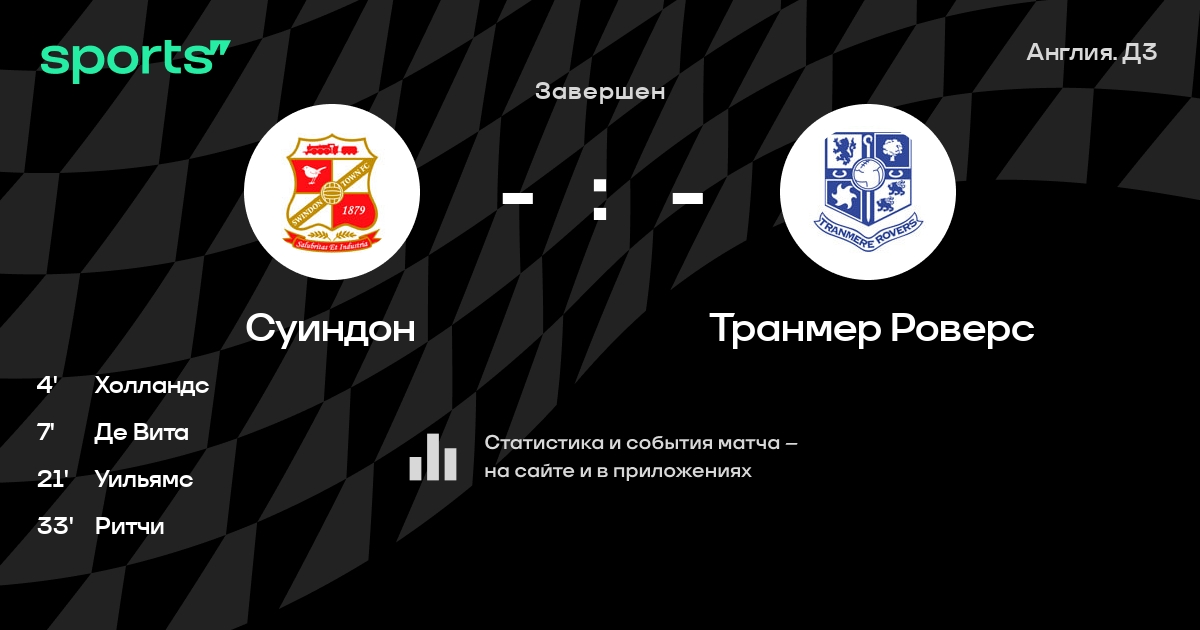 Фодерингэм - Девера, Томпсон, Уорд - Холландс, Маккормак, Ритчи, Ферри - Мартин, Де Вита, УильямсЗапасные: Bedwell, Арчибальд-Хенвилл, Робертс, Босток, Руни, Коллинз