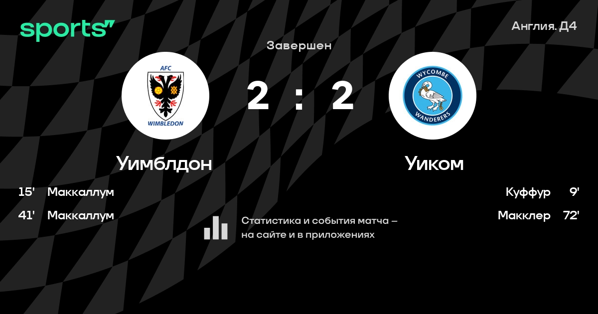 Арчер - Данн, Харриман, Уинфилд, Хоз - Грант, Скоуэн, Льюис, Вуд - Куффур, МорганЗапасные: , Маккой, Стюарт, Макклер, Андраде
