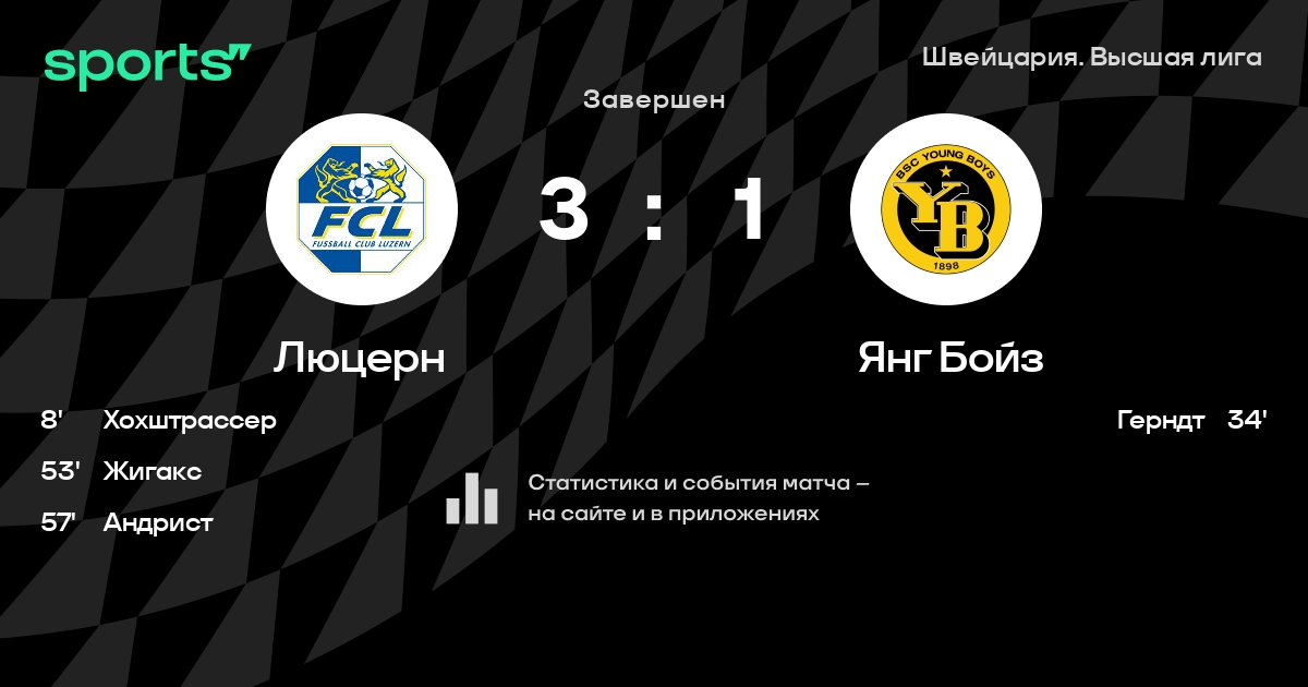 Цибунг - Лустенбергер, Штаель, Сарр, Пульич - Касами, Ренггли, Жигакс, Хохштрассер, Винтер - РангеловЗапасные: Йеле, Тиссон, Андрист, Висс, Хюка, Mouangue Otele