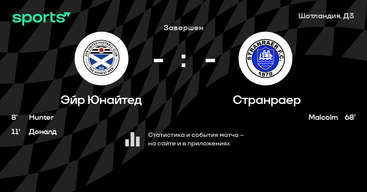Смит - Smith, McGregor, McCann - Hunter, Sinclair, Доналд, McLaughlin - Бьюкенен, Robertson, МоффатЗапасные: Brown, Браунли, Wylie, Winters, Shankland