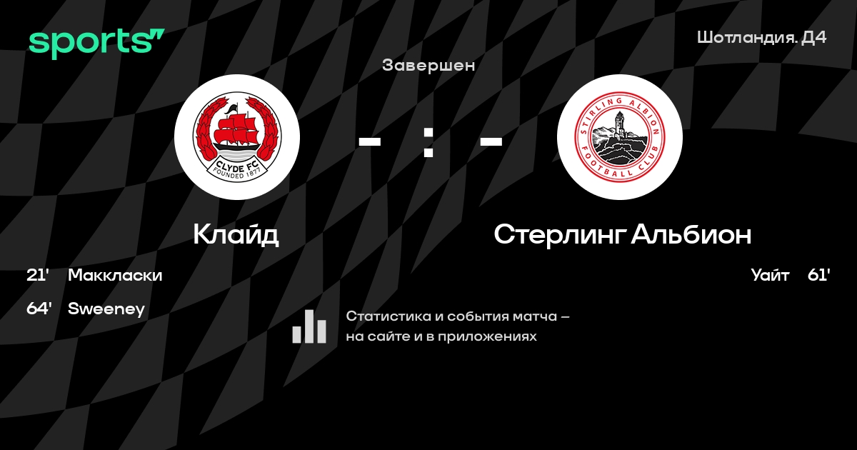 Баркли - Brown, Lyden, Oliver, Gray - Sweeney, Nicoll, MacBeth - Watt, McColm, МаккласкиЗапасные: Rajovic, Макдоналд, Marsh, Graham, Fitzharris